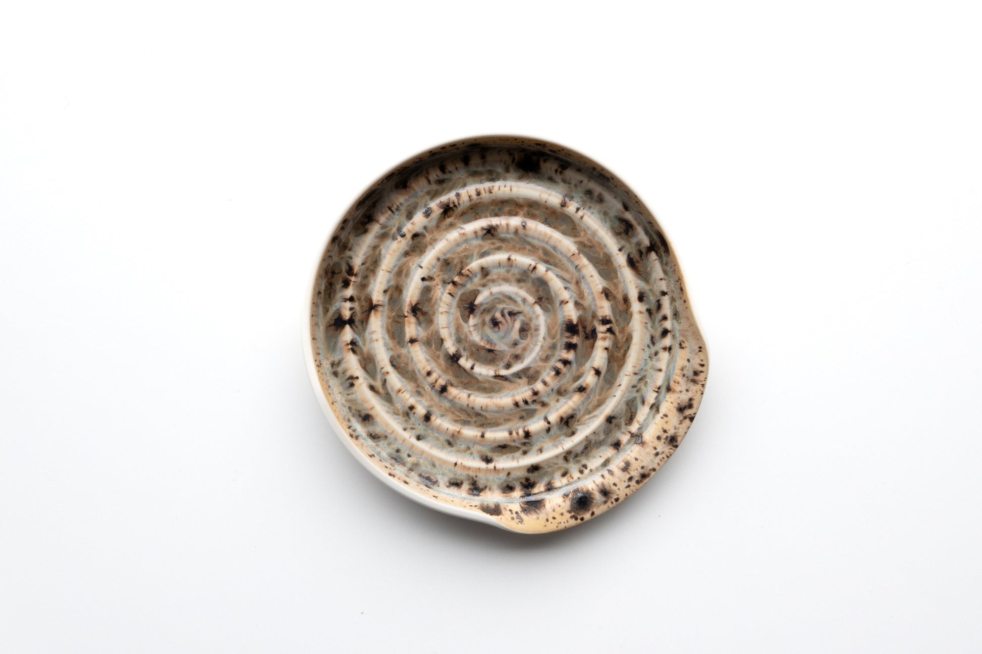 Repose-cuillère ou ustensile, réalisé au tour de potier, en porcelaine. Diamètre: 13 cm Hauteur: 1,5 cm