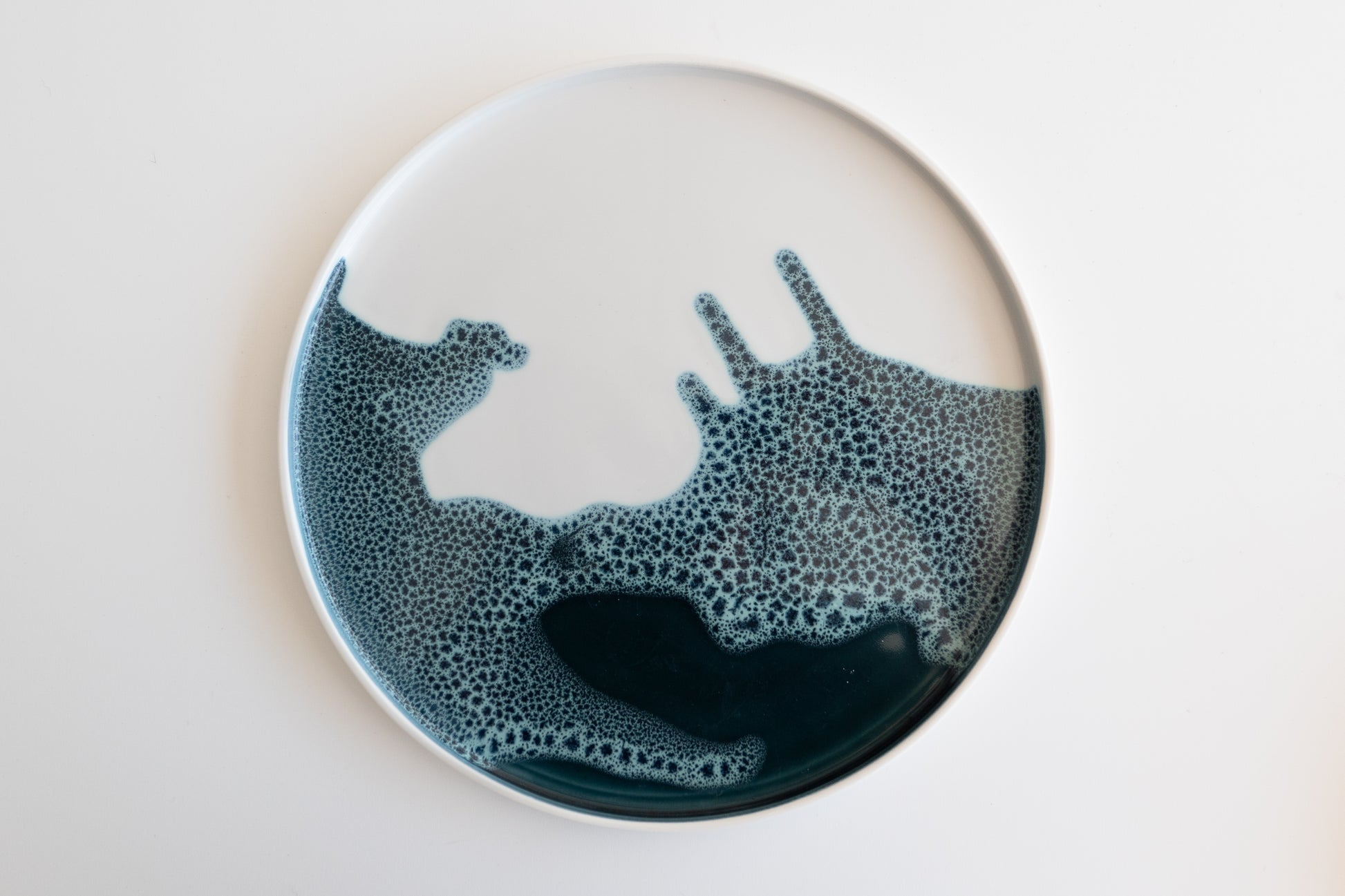 Grande assiette en porcelaine, façonnée à la main, d’environ 25 cm.