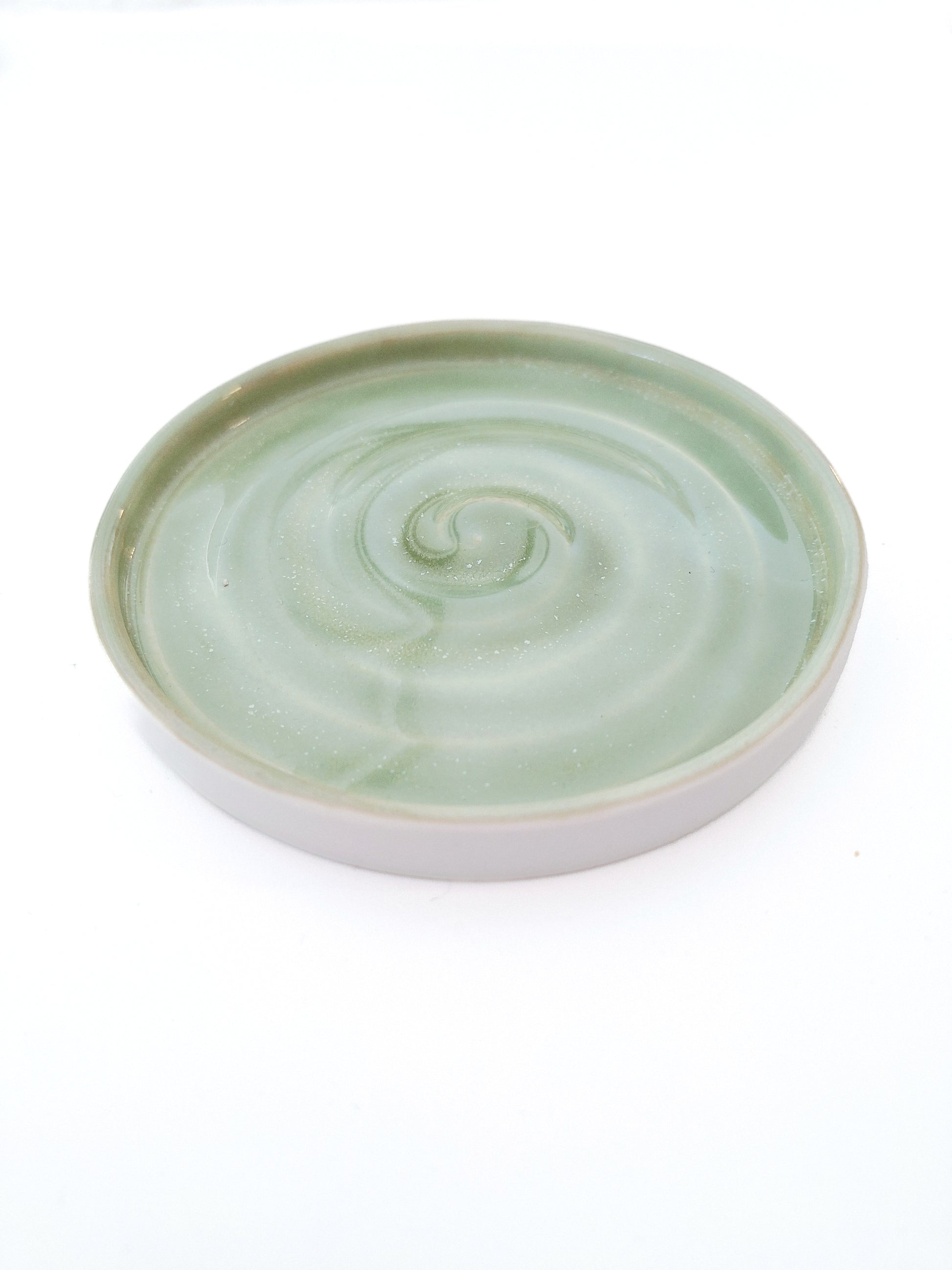 Porte-savon, réalisé au tour de potier, en porcelaine. Diamètre: 11,5 cm Hauteur: 1,5 cm